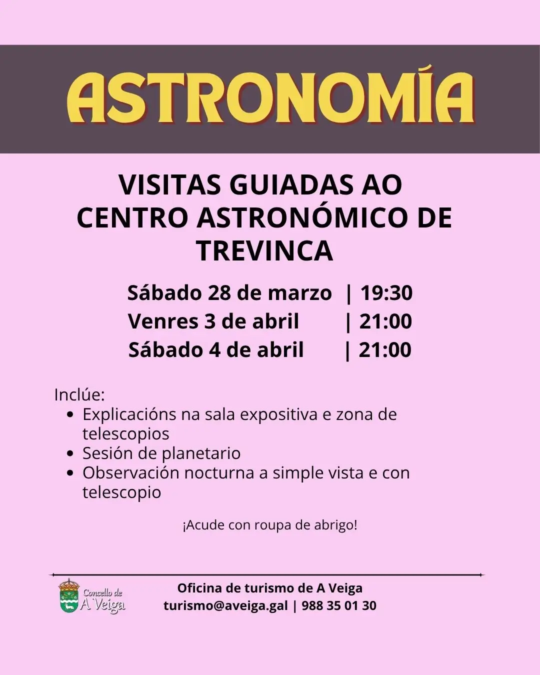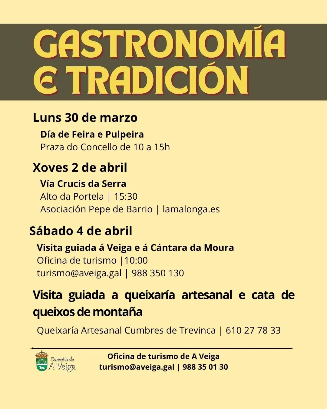 Senda Verde Rio Xares27/10/2025 Semana Santa na Veiga 27/03/2026 Share0 Related posts27/10/2025Senda Verde Rio XaresRead more01/10/2025V Exposición Agogandeira de TrevincaRead more21/05/2025I Festival de Corais Terras de TrevincaRead more